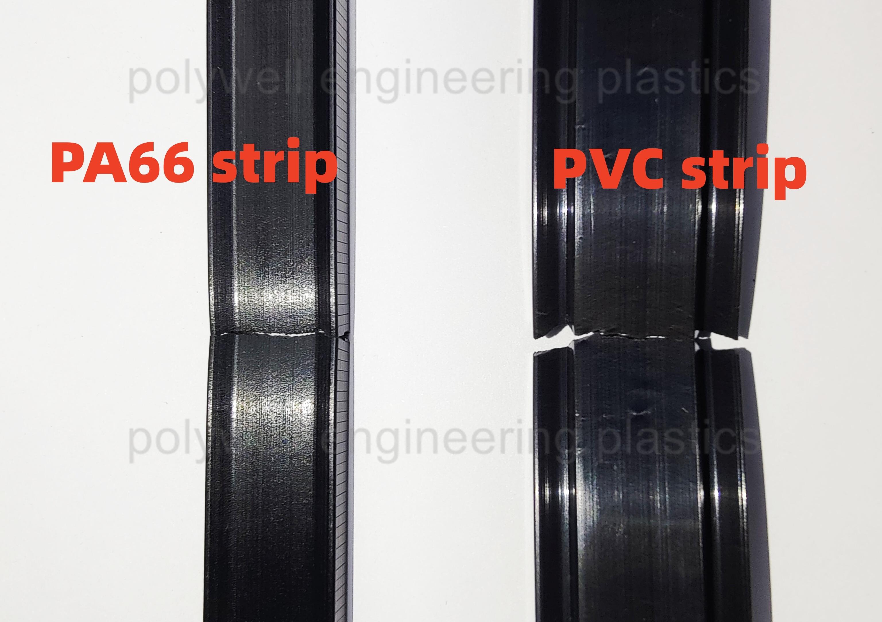 PVC thermal break strip is soft, easy to bend, and not easy to break. It needs to be folded in half for more than ten times before breaking. After breaking, the fracture becomes white, deformed. Strips cannot be restored through docking.